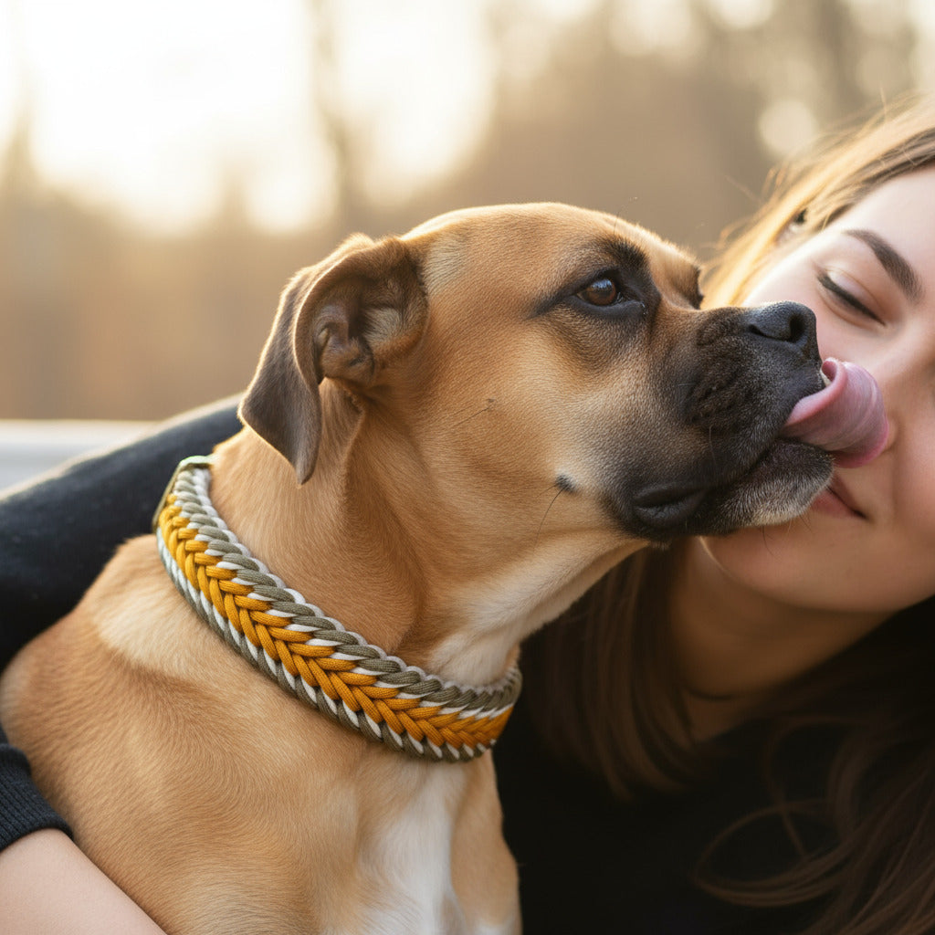 Der Hauptbestandteil meiner Produkte besteht aus Paracord. Die verstellbaren Halsbänder haben einen Adapter aus Biothane.